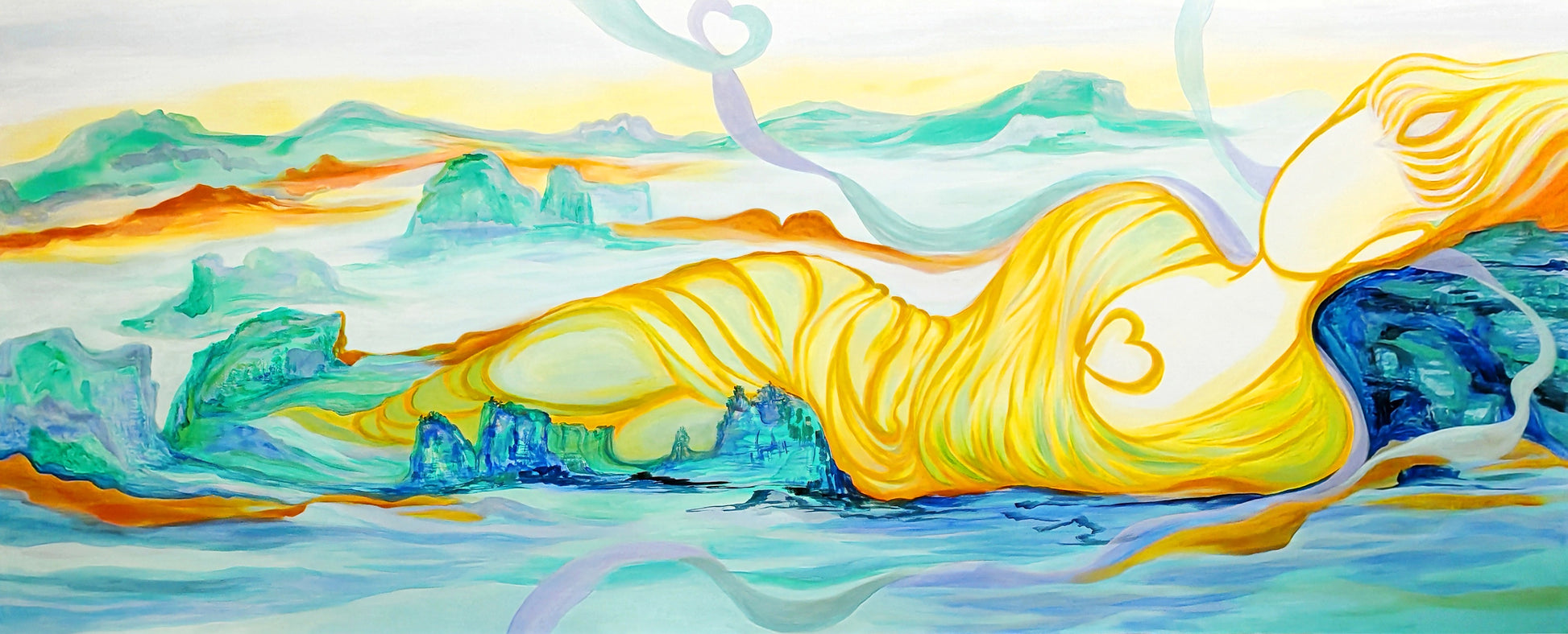 敦煌梦境-《卧禅问心——丝路观音》-丙烯绘画-尺寸120 x300cm-全球1