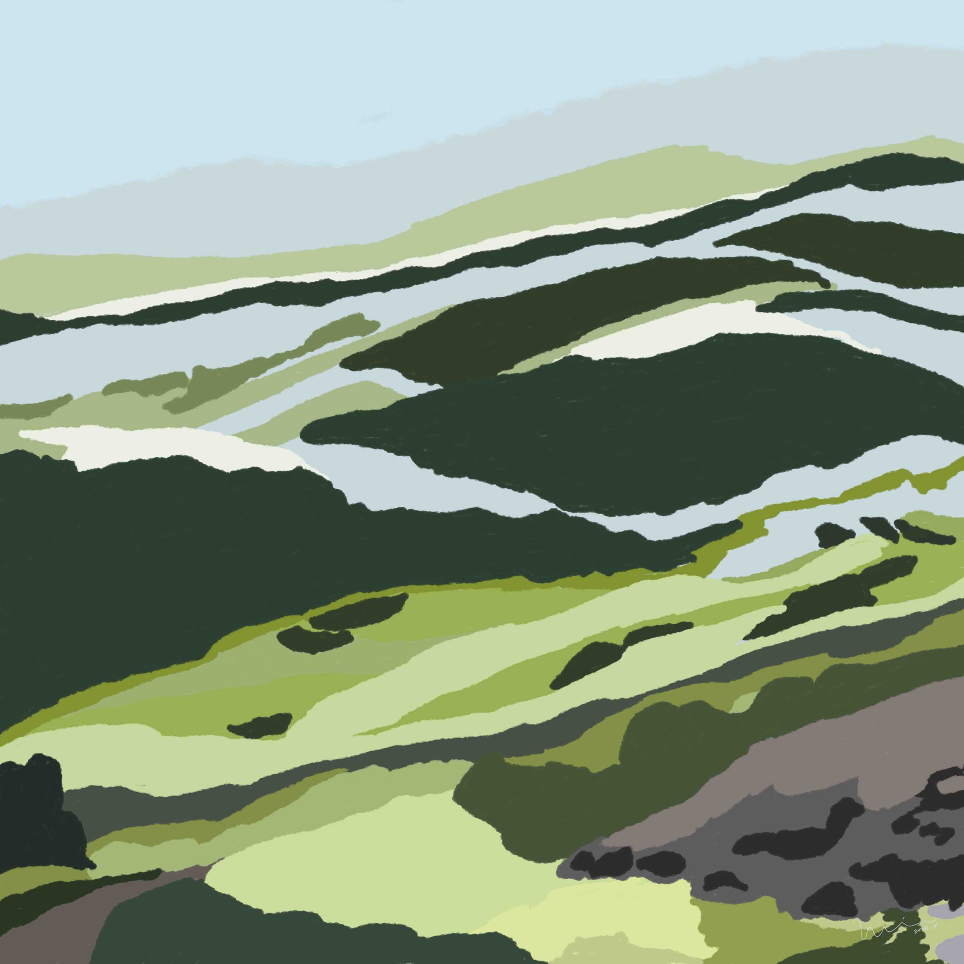 山水系列- 《苔痕与潮汐的私语》-手工数码-尺寸38.1 x38.1cm-签名限量99件