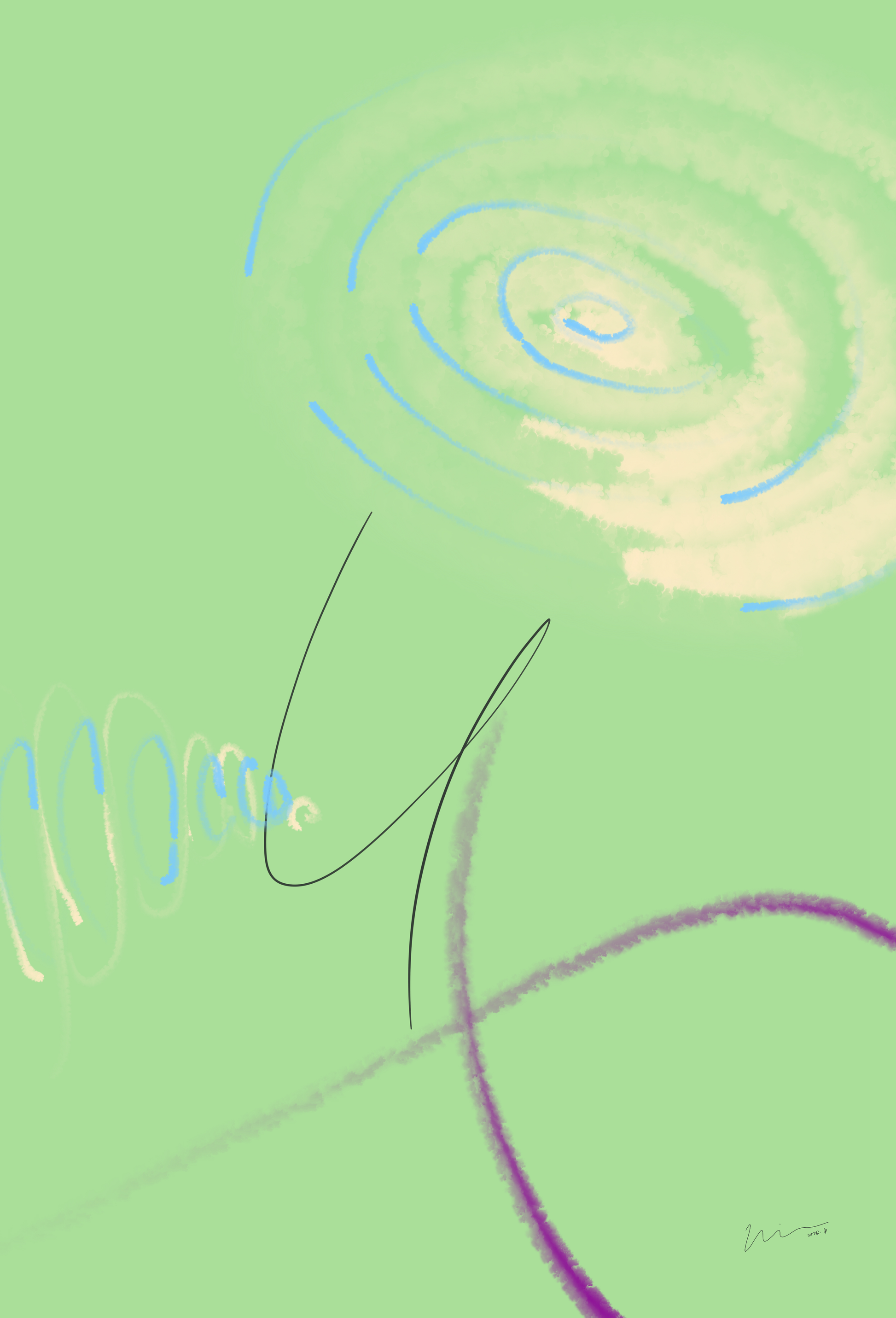 Simple lines on a refreshing green ground trace a living rhythm. A vortex between mouth and mind becomes an energy field—breath cycling into harmony, where nature, thought, and vitality resonate.