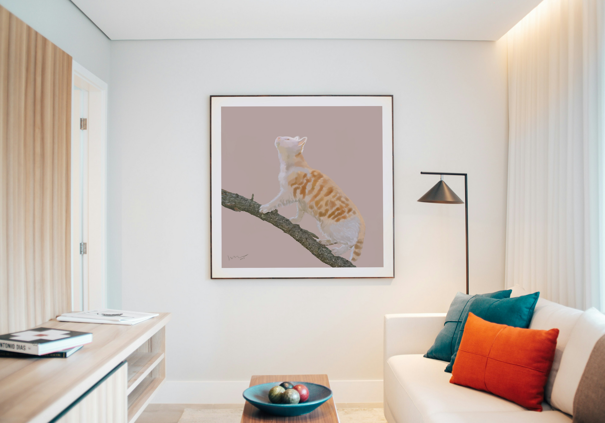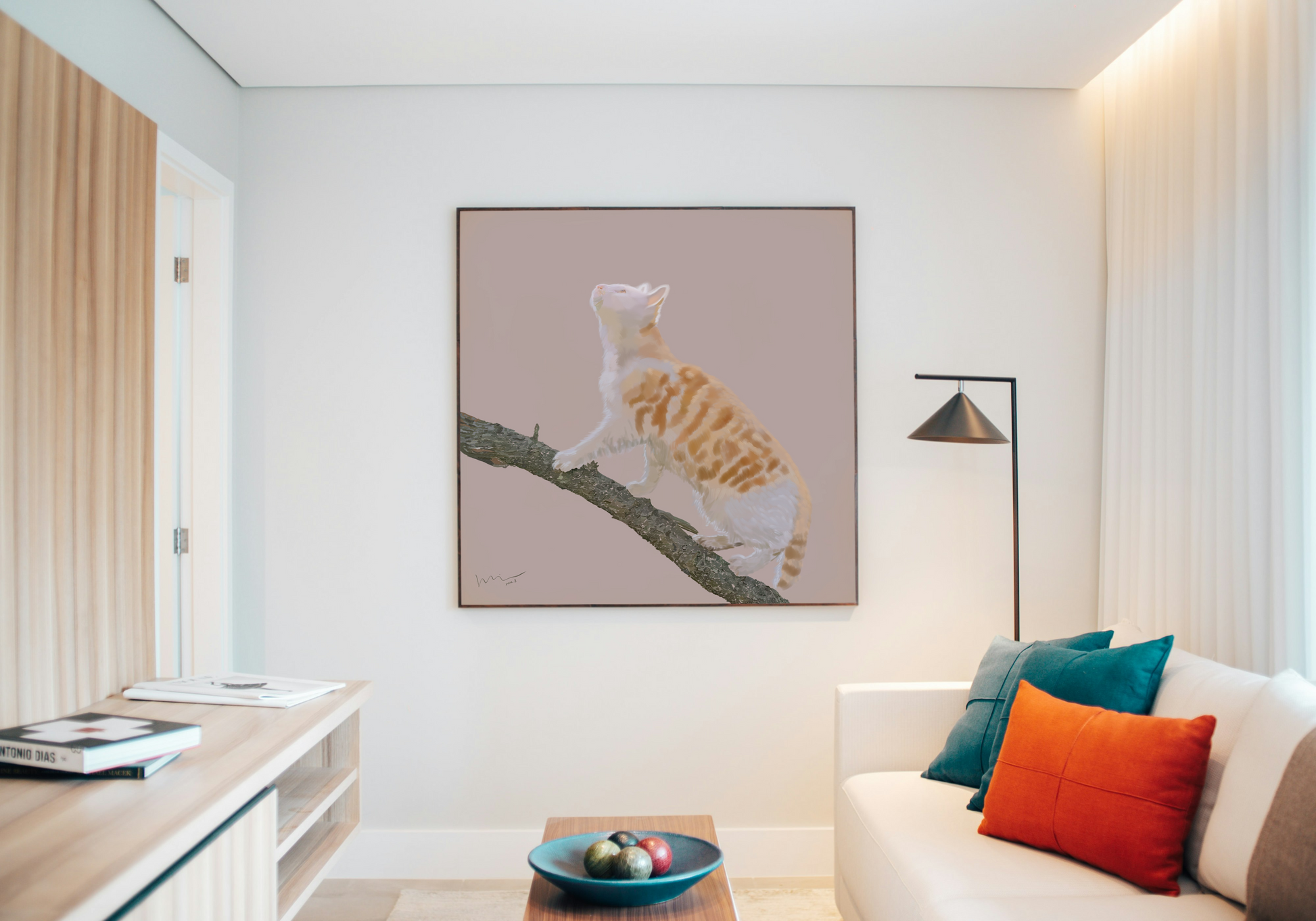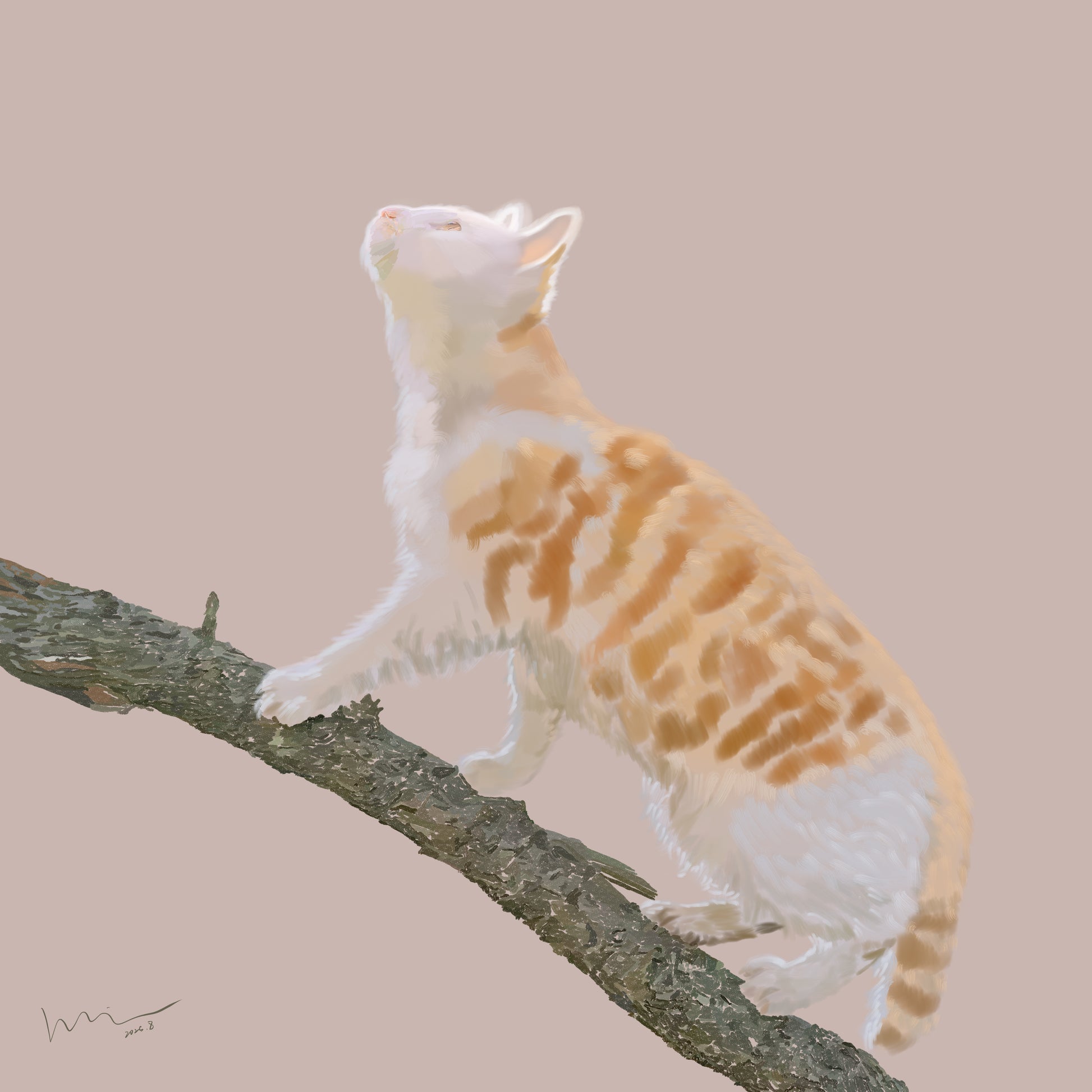 一棵树自柔光中生长,枝干似由液态阳光凝铸。一只猫栖于树冠最高处,爪尖轻勾着光流,琥珀色目光如同在云端酿梦。它以栖枝的姿态证明:真正的登云,只需在柔光织就的树冠上,将平凡栖成一场云端漫步。