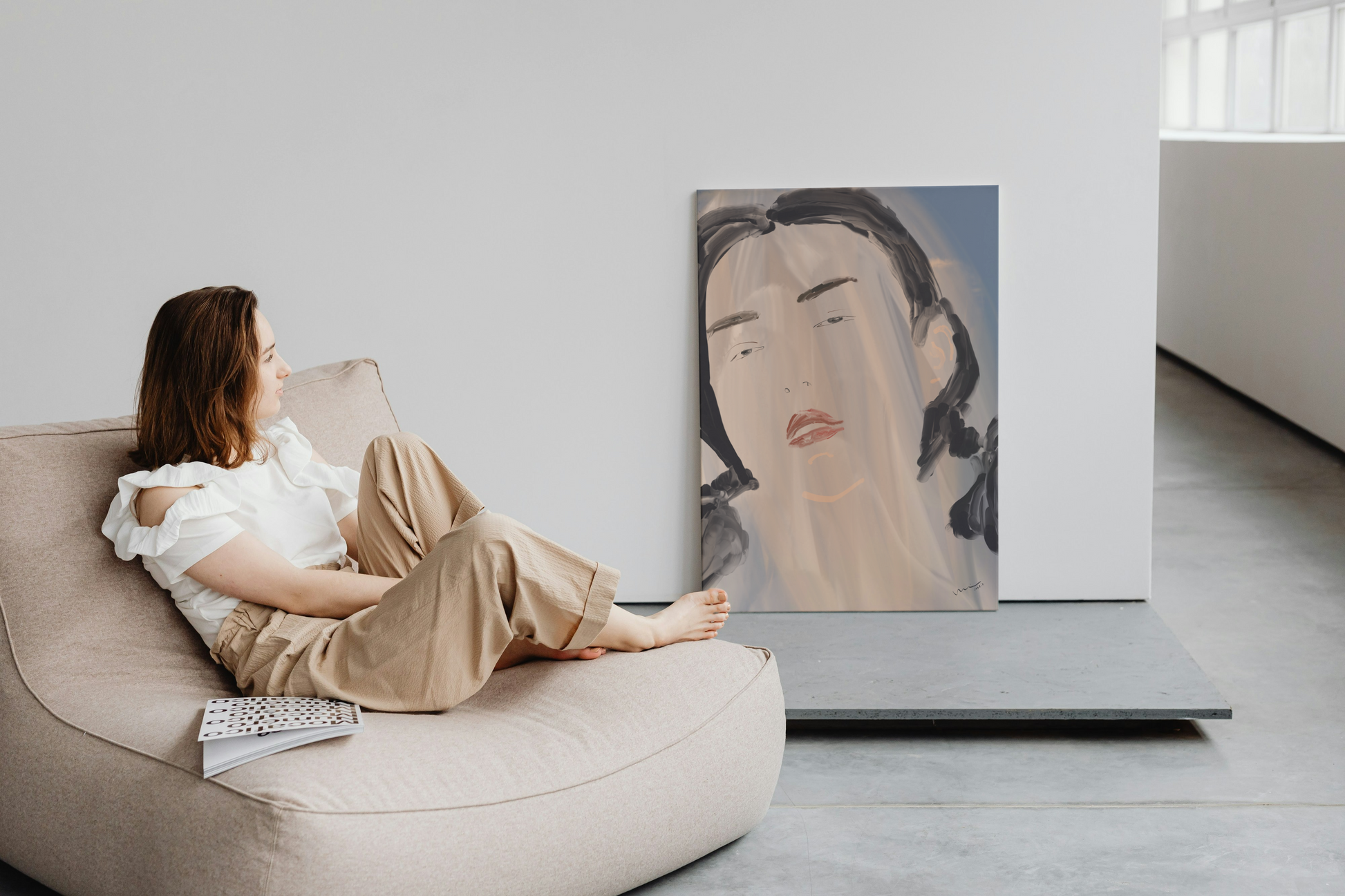 A face bound by transparent film—chin slightly raised—in elegant defiance of an unseen shackle. The film’s sheen clings to lips and brows like frozen breath. The ‘veil’ becomes both physical restraint and social metaphor; the uplifted chin carves silence into a poem of resistance.